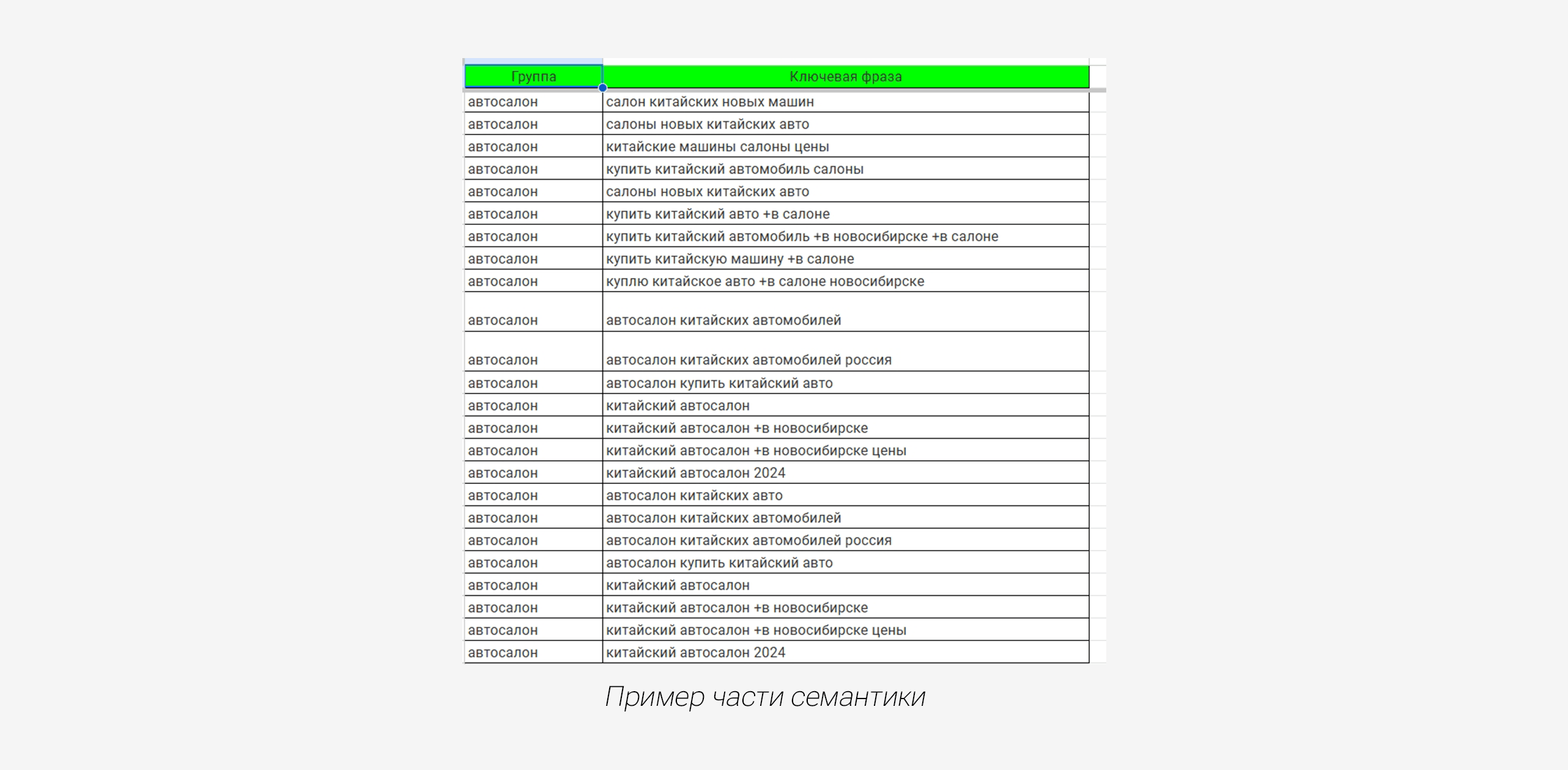 • поиск — общие запросы (запросы по продаже китайских автомобилей и продаже имеющихся в наличии марок автомобилей);
