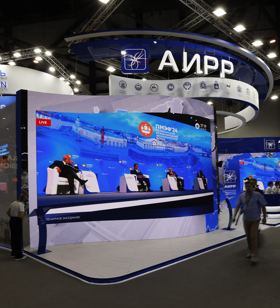 Осуществить комплексную реализацию и обеспечение безупречной работы выставочного стенда АИРР на Петербургском международном экономическом форуме (ПМЭФ) 2024. Ключевой задачей было выполнение полного цикла работ «под ключ» в строгом соответствии с техническим заданием Заказчика и высочайшими стандартами делового мероприятия международного уровня.