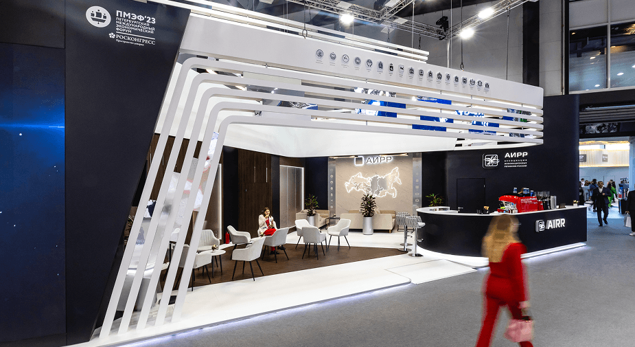 Обеспечить комплексную реализацию и функциональность выставочного стенда АИРР на Петербургском международном экономическом форуме (ПМЭФ) 2023. Основной задачей стало выполнение полного цикла работ в строгом соответствии с техническим заданием заказчика и требованиями международного мероприятия.