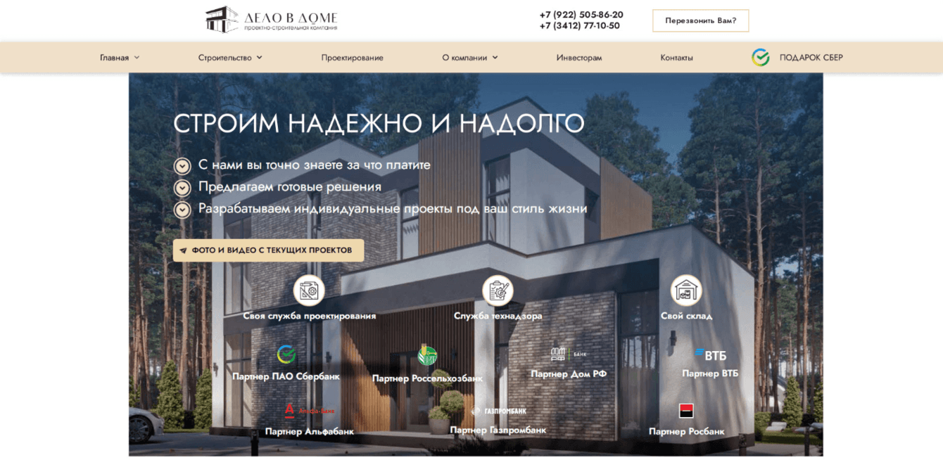 Обеспечение высоких позиций сайта застройщика «Дело в Доме» с помощью объединения нескольких сайтов компании, обновления дизайна и актуализации контента.