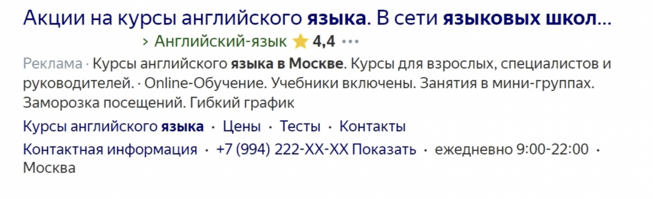 - УТП в рекламе: низкая цена, большой выбор языков, удобное расположение