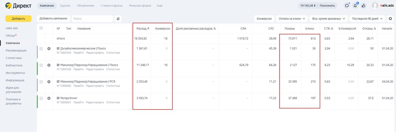 Задача: привлечение целевого трафика на услуги маникюр и педикюр с целью конвертации в записи