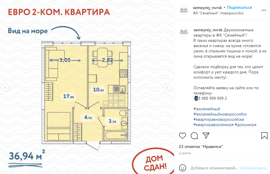 1. Выделили правильную целевую аудиторию(люди, желающие переехать в Новороссийск в готовое жильё)