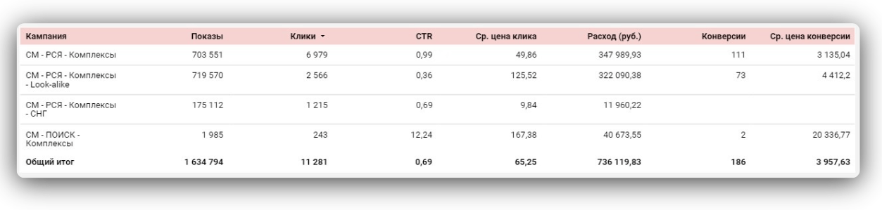 Дубль кампании РСЯ по ключевым словам на страны СНГ также не показал эффективности в течение тестового периода, поэтому был отключен нами.