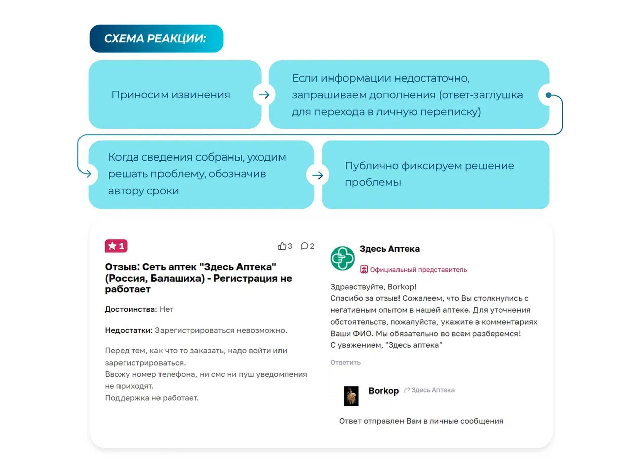 На основе анализа массива отзывов сформировали основные сценарии реагирования.