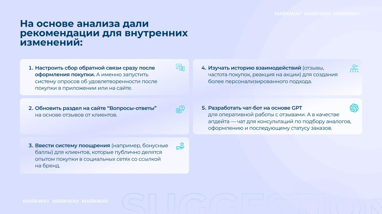 Чтобы нашими данными могли пользоваться в работе менеджеры “Здесь аптека”, мы составили несколько адаптивных сценариев реагирования. В каждом прописали схему оперативного ответа. В результате срок ответа уменьшился с 7 до 1 дня.