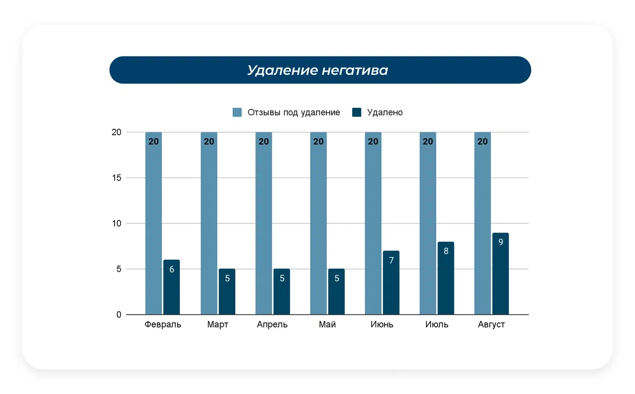По каждому фейку велась претензионная переписка с модераторами ресурса. Это имеет значение. Потому что, по нашим исследованиям, рейтинг может опуститься на 0.1-0.3 балла даже от одного негативного отзыва. В результате удаления фейков мы восстановили рейтинг с 3,9 до 4,3 баллов.