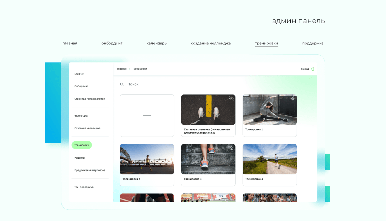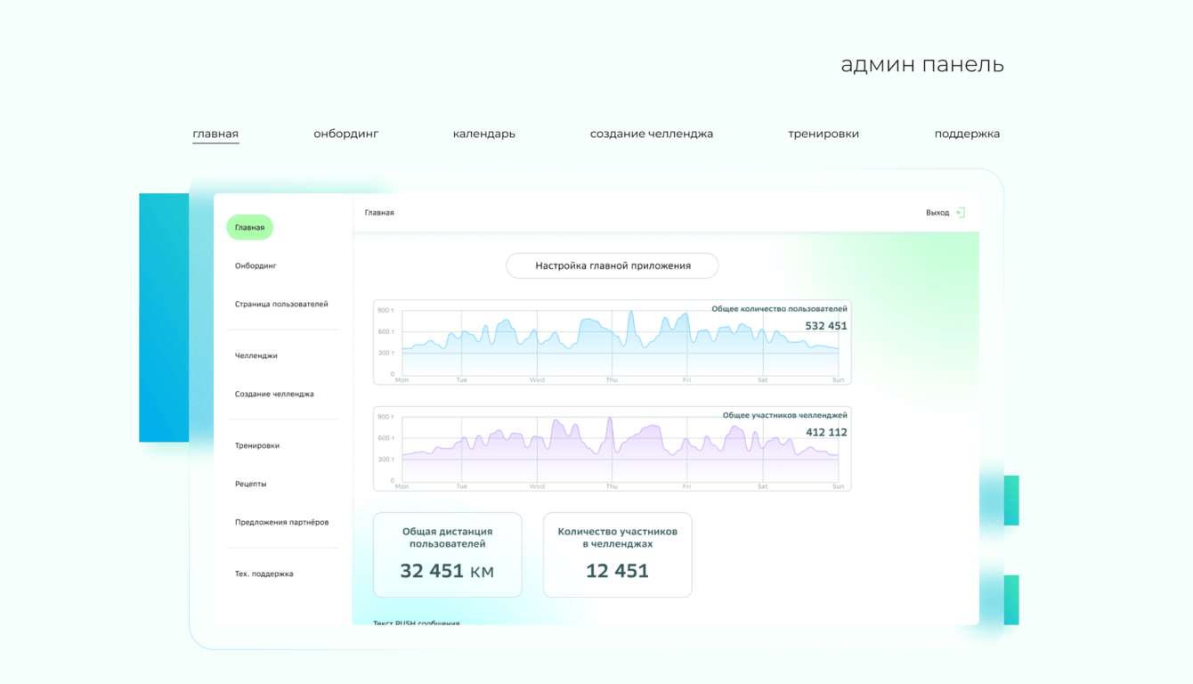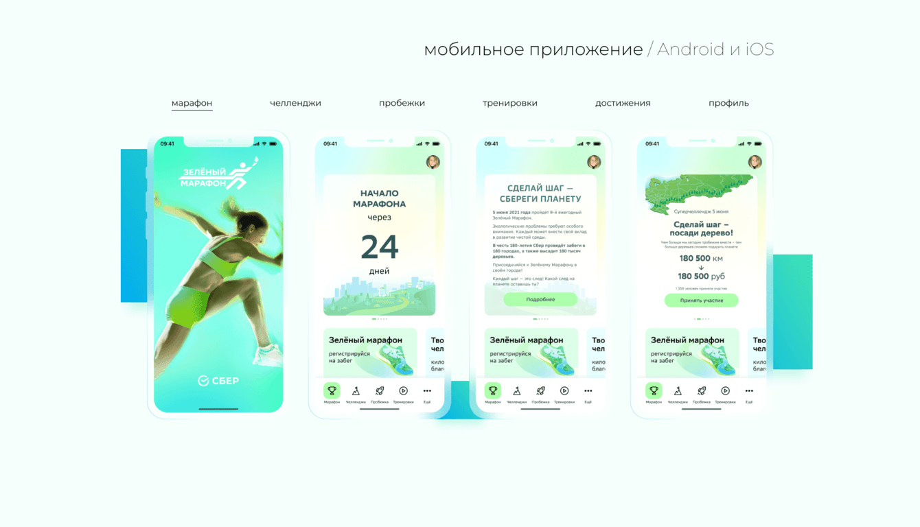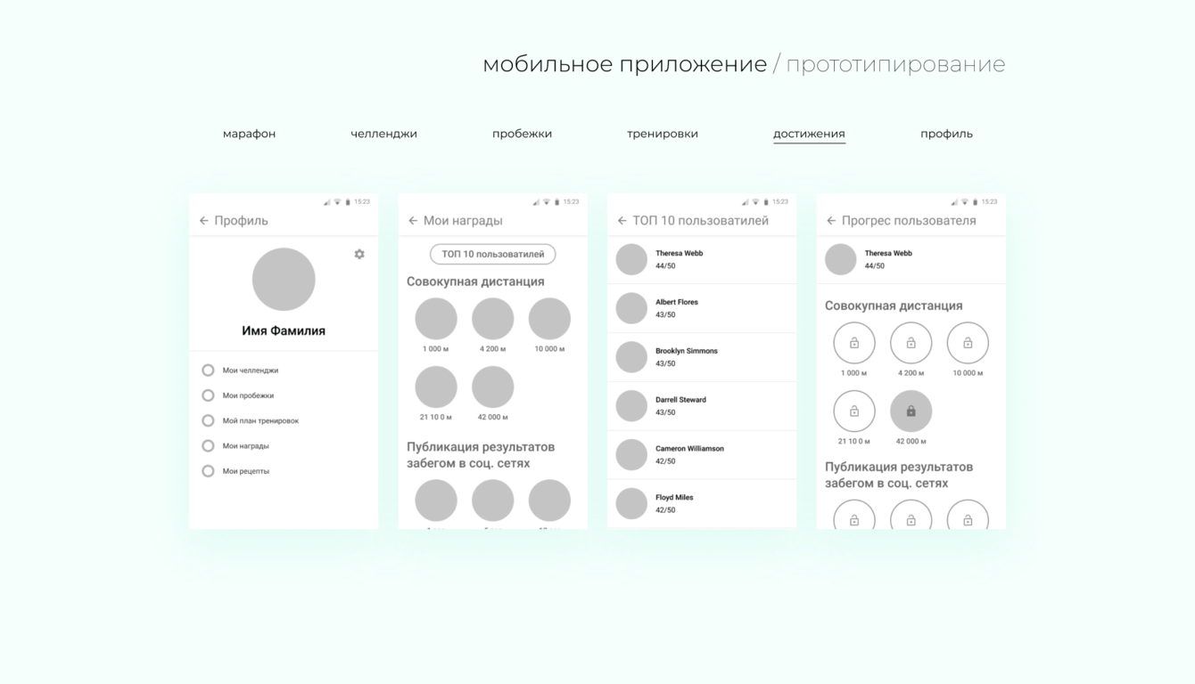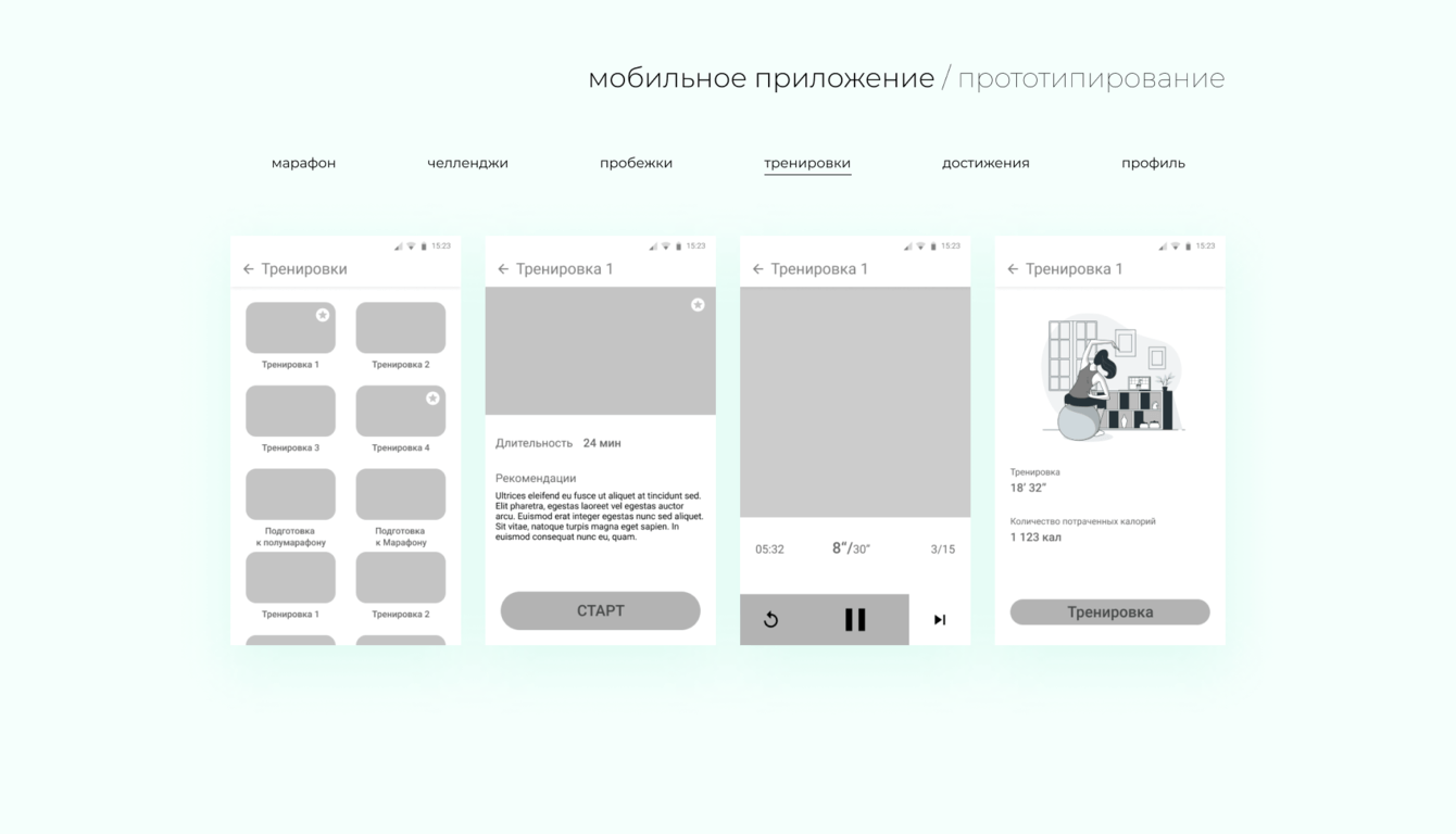 -Разработка мобильного приложения с функцией трекера маршрута для пробежек, тренировками и рецептами, системой челленджей и наград от партнёров.
