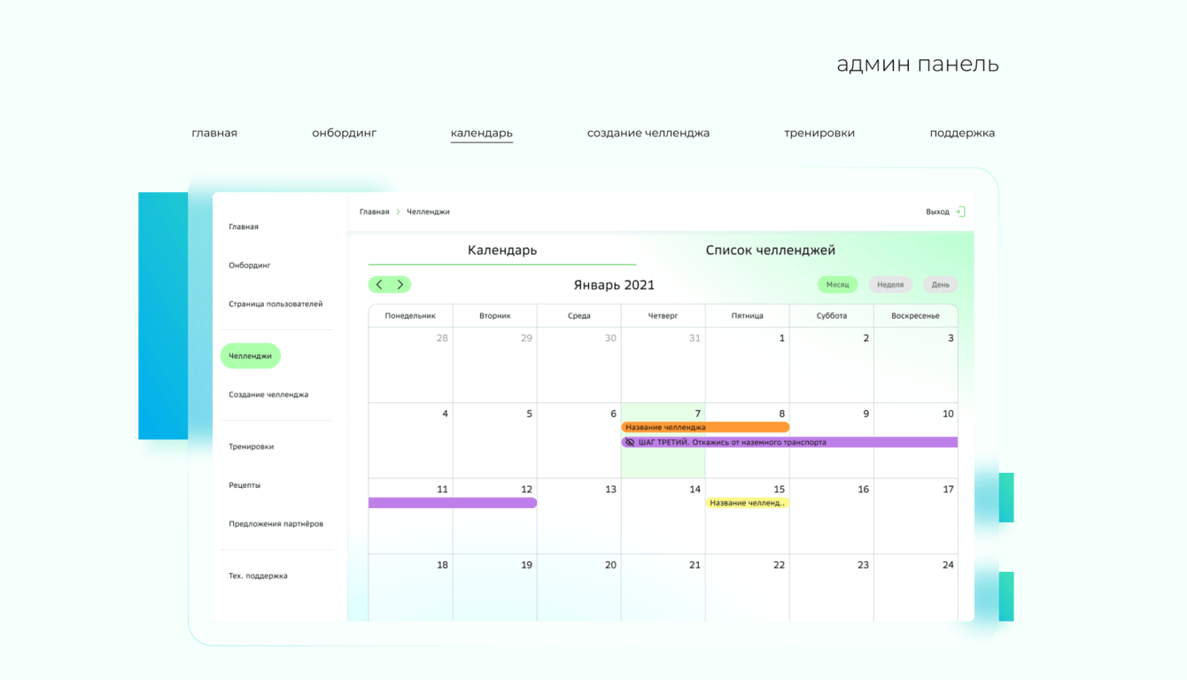 -Разработка уникальной системы конструктора челленджей с возможностью партнерской интеграции, а также система имеет автоматическую модерацию, но может включать в себя ручную проверку администратором, результатов участника.