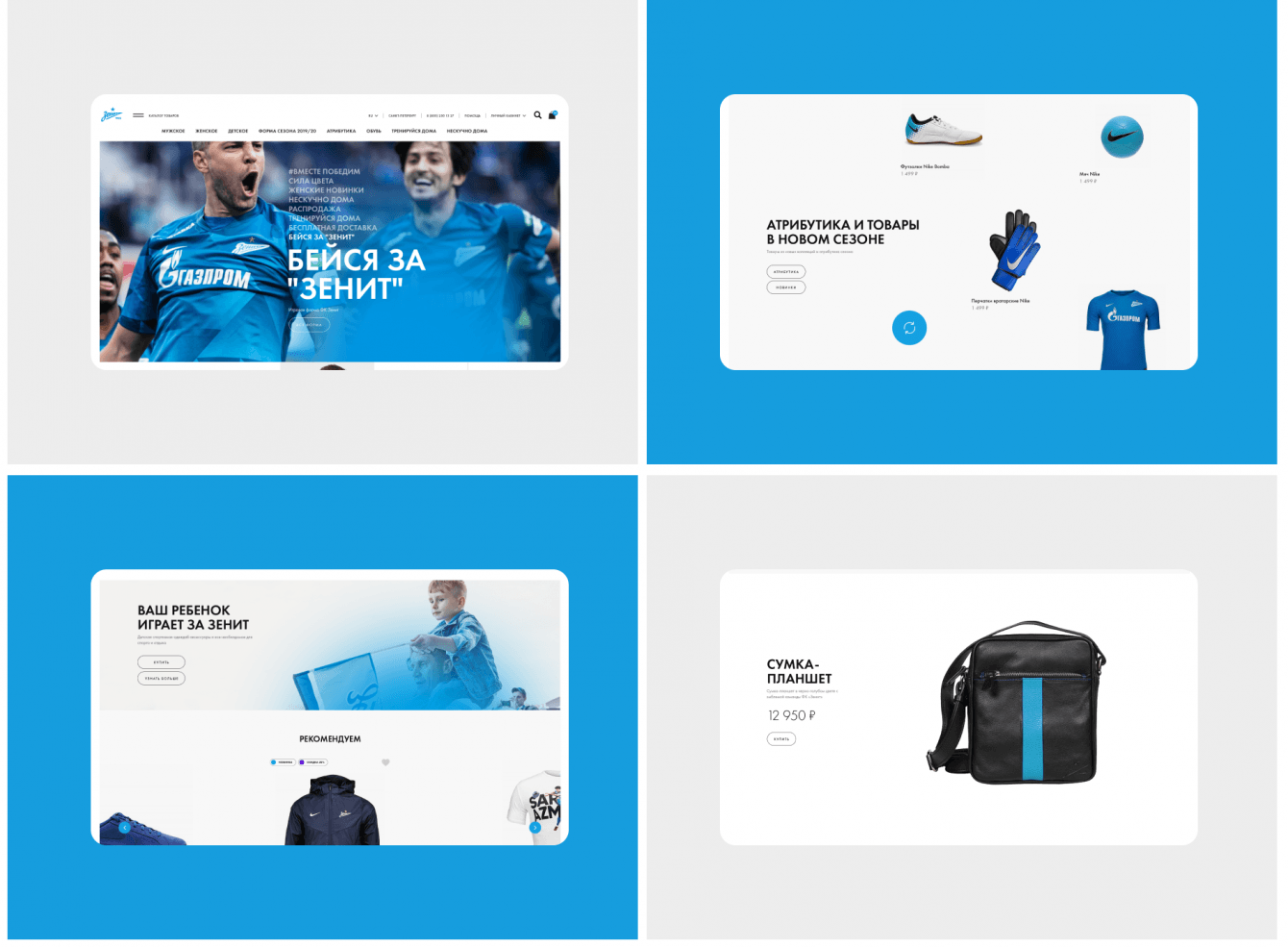 Носить клубную атрибутику — гордость для болельщика, подтверждение причастности к общей командой истории, поэтому всю форму, одежду и сувениры было решено показывать сразу на странице товара, отведя под имиджевые фотографии бóльшую часть экрана.