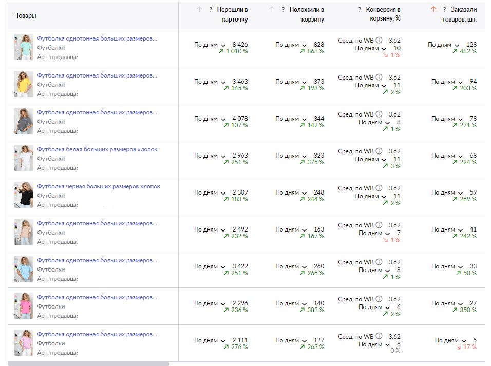 1. Ведение магазина на Wildberries по отдельным карточкам/позициям в категории «летние женские футболки».