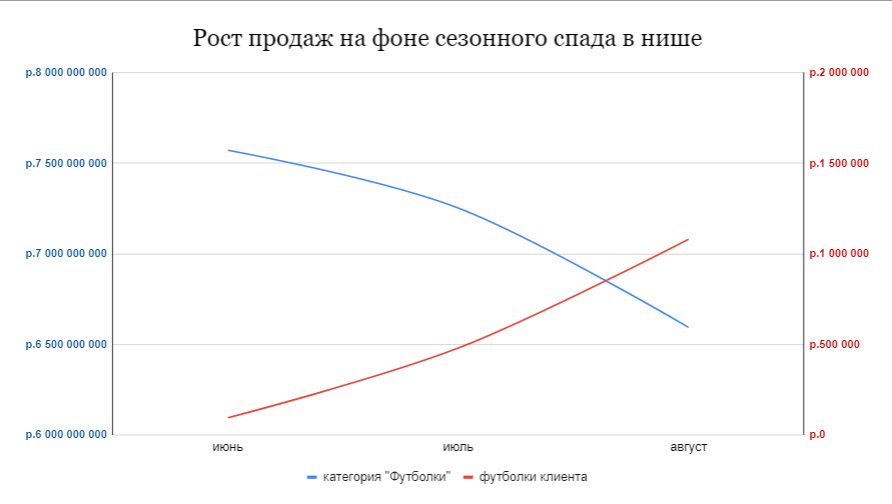 Провели анализ категории товаров, чтобы определить объемы продаж на рынке. Выявили основных конкурентов, провели мониторинг цен, определили спрос по сезонам и географию продаж, посчитали Unit-экономику. Изучили продажи поставщика на текущий момент. Посмотрели отзывы и вопросы, которые пользователи писали о товарах клиента. Далее сформировали первую поставку с учетом остатков по складам.