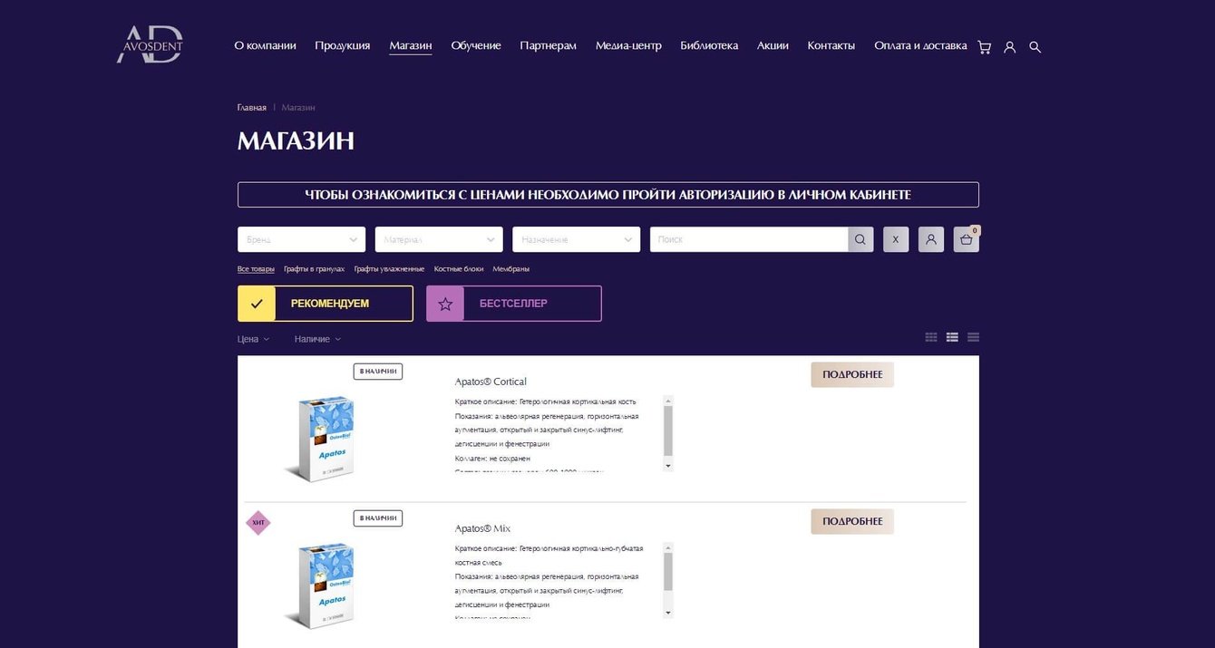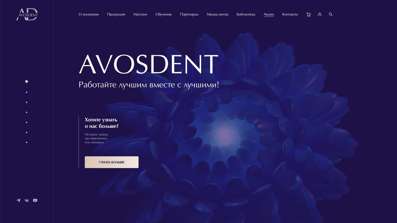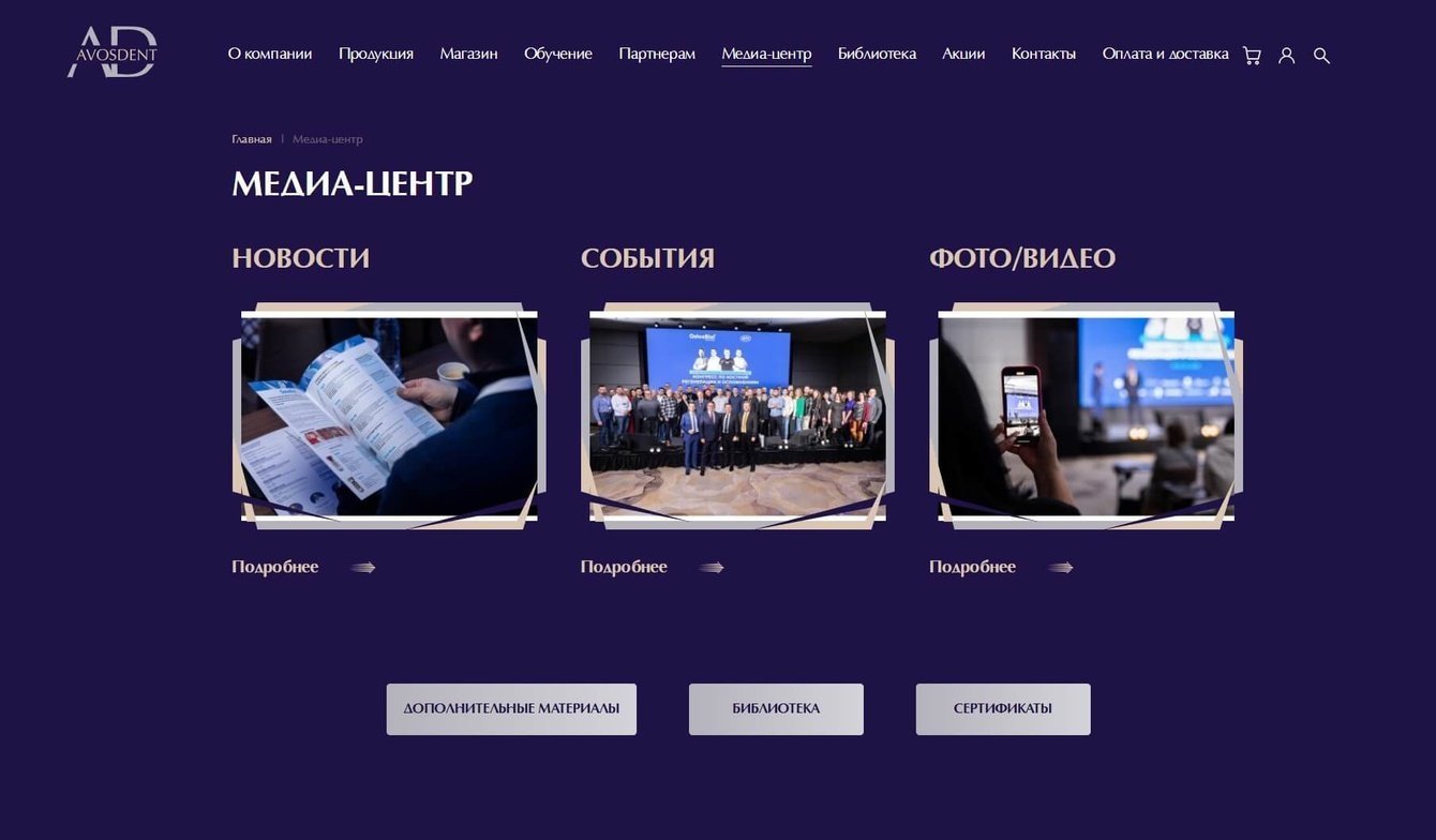 И пусть с технической точки зрения мы ушли от простых решений к более сложным, но теперь сайт в полной мере стал бизнес-инструментом для AVOSDENT. Клиенты компании не просто оформляют заказы, но и возвращаются за полезными материалами, следят за новостями и обучениями. Находятся в контакте с брендом.