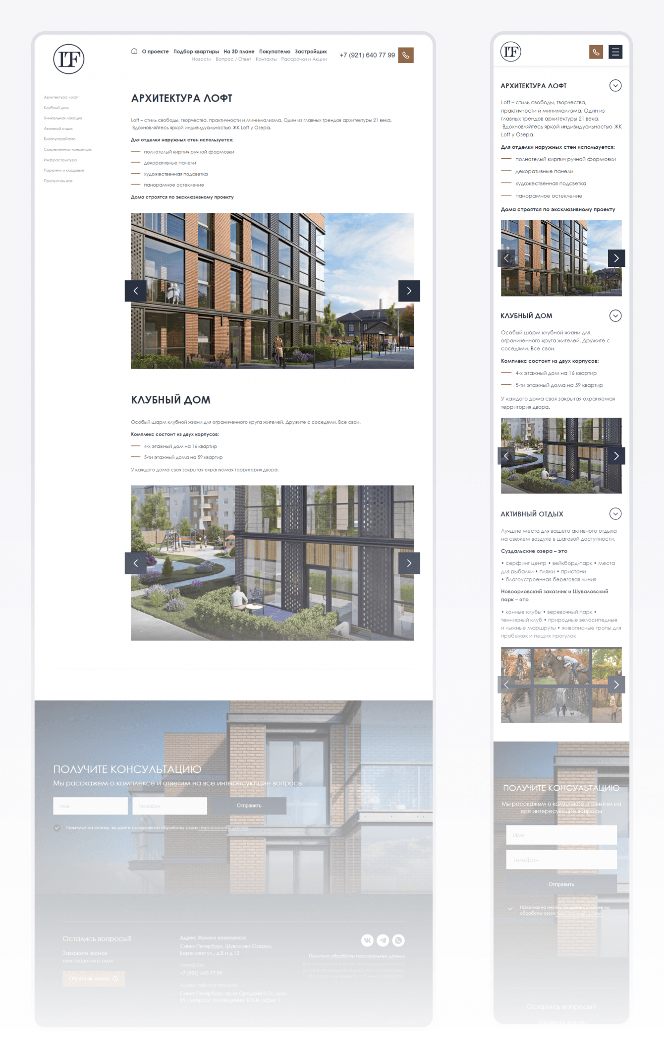 Клиент обратился с задачей разработки сайта для жилого комплекса “Loft у Озера” в г. Санкт-Петербурге. Мы изучили референсы, как подают себя конкуренты, провели аудит сегментов аудитории.
