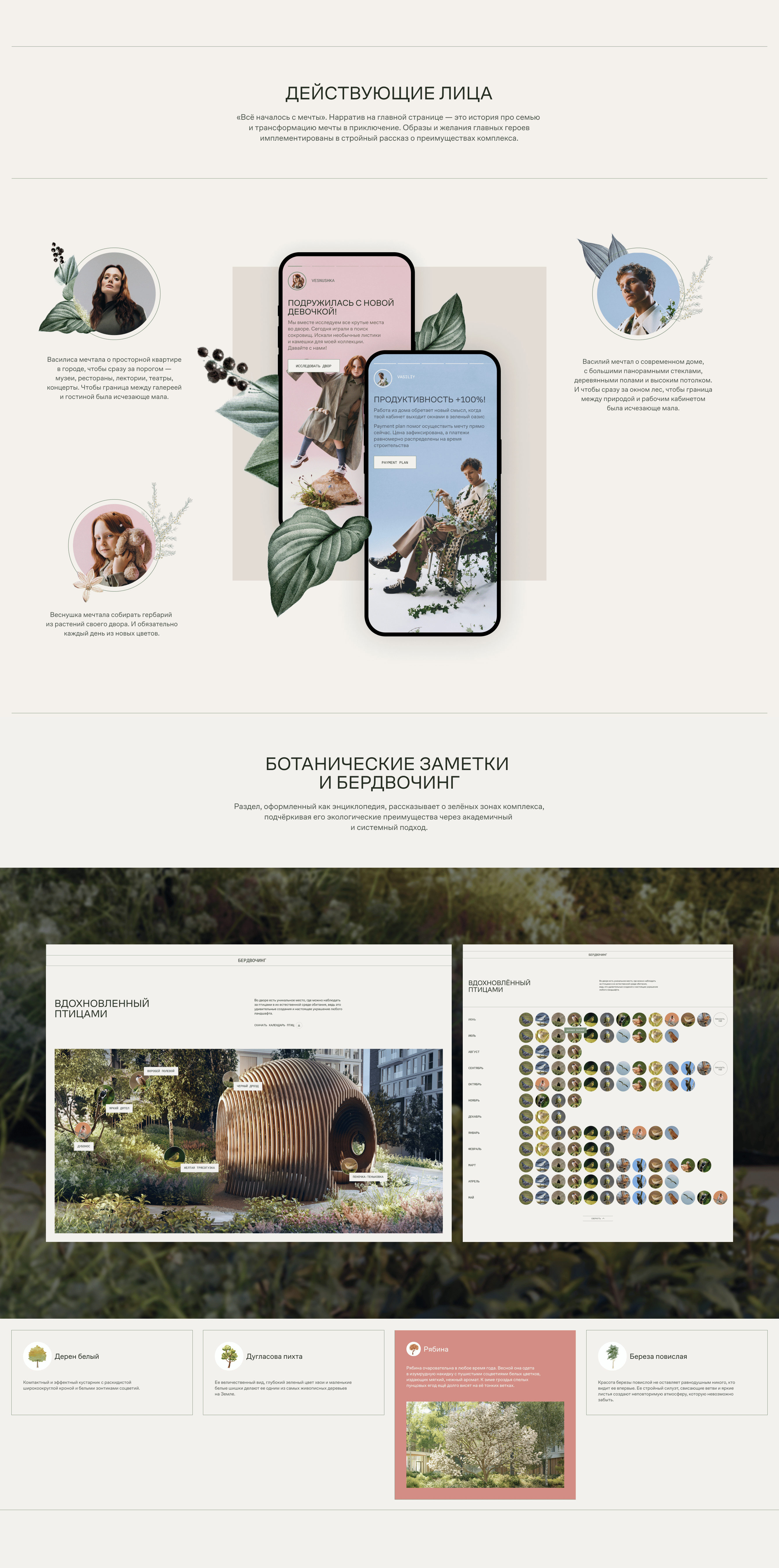 — Сторис от героев. Комплекс рассказывает о себе через истории персонажей — семьи современных «академиков». Они делятся своими мечтами и образом жизни, помогая пользователю ассоциировать себя с проектом.