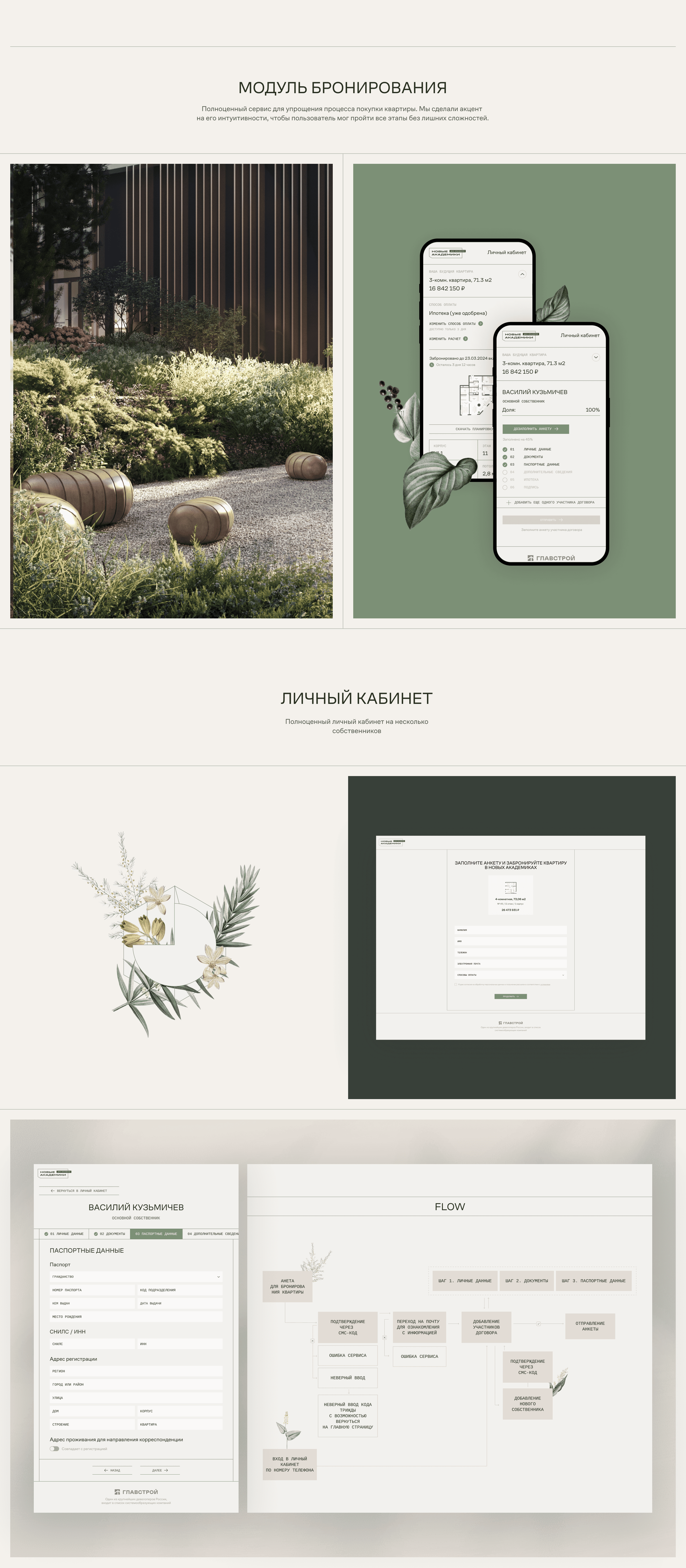 Модуль бронирования, в отличие от простой формы заявки, представляет полноценный сервис для упрощения процесса покупки квартиры. Мы сделали акцент на его интуитивности, чтобы пользователь мог пройти все этапы без лишних сложностей.