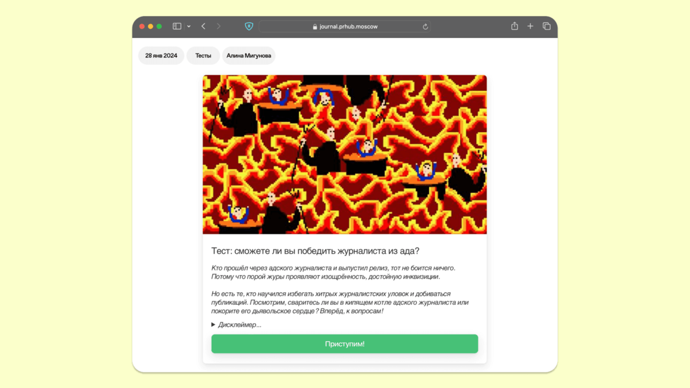 Мы долго брейнштормили, как должно выглядеть бренд‑медиа для пиарщиков, и решили сделать сайт в пикселях: он смотрится оригинально, мило и, главное, не стоково.