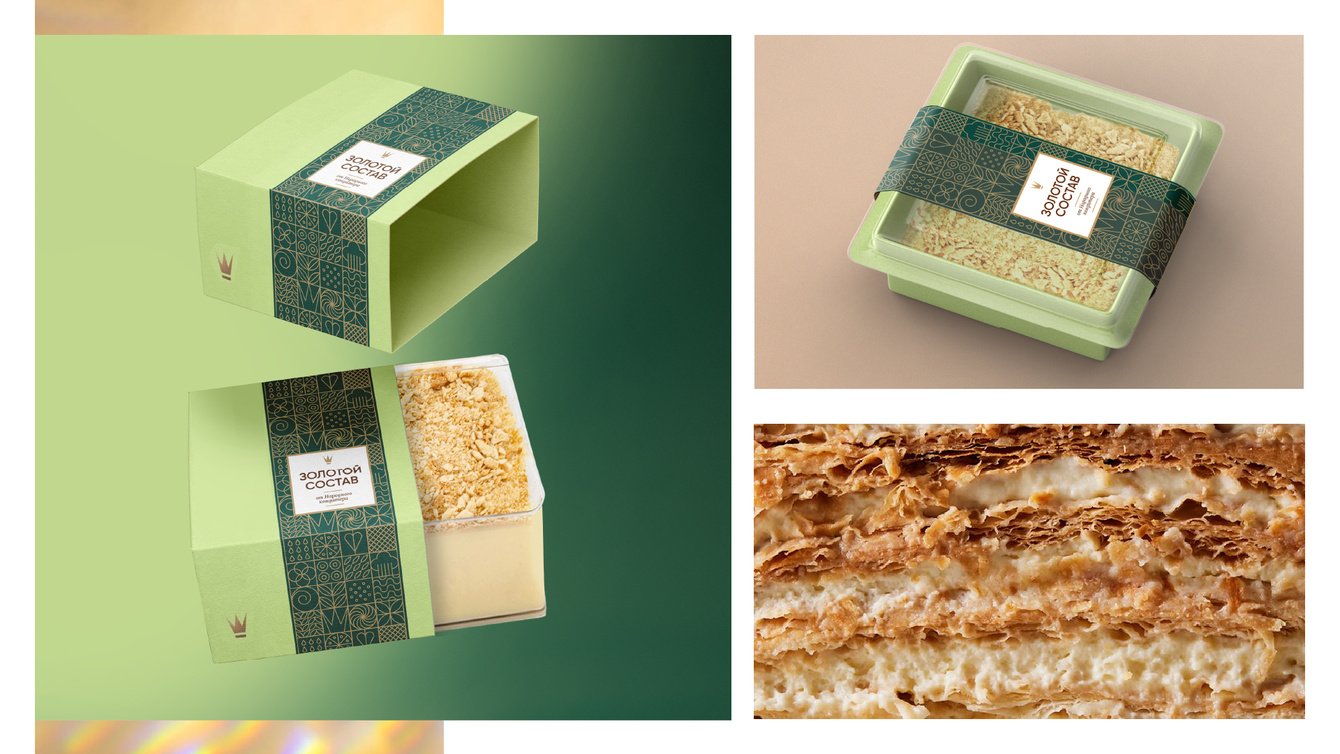 По словам Рената Агзамова, создателя «Народного кондитера» и новой марки «Золотой состав», сегодняшние покупатели всё чаще склонны расценивать торты и десерты как престижный подарок, который можно преподнести с гордостью. Поэтому и сами торты, и их оформление должны быть исключительно высокого качества. Мы разработали логотип и принципиальный дизайн упаковки для продукции бренда «Золотой состав», благодаря которым торты и десерты становятся настоящим ценным подарком.