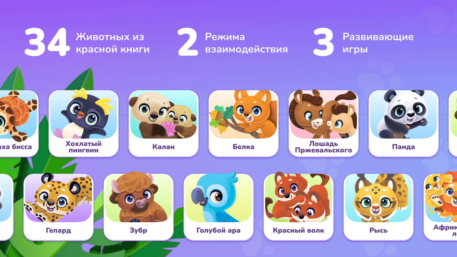 Благодаря режиму взаимодействия ребенок узнает имя персонажа, ареал обитания и интересные факты о нём. Кроме того добавлены характерные звуковые эффекты.