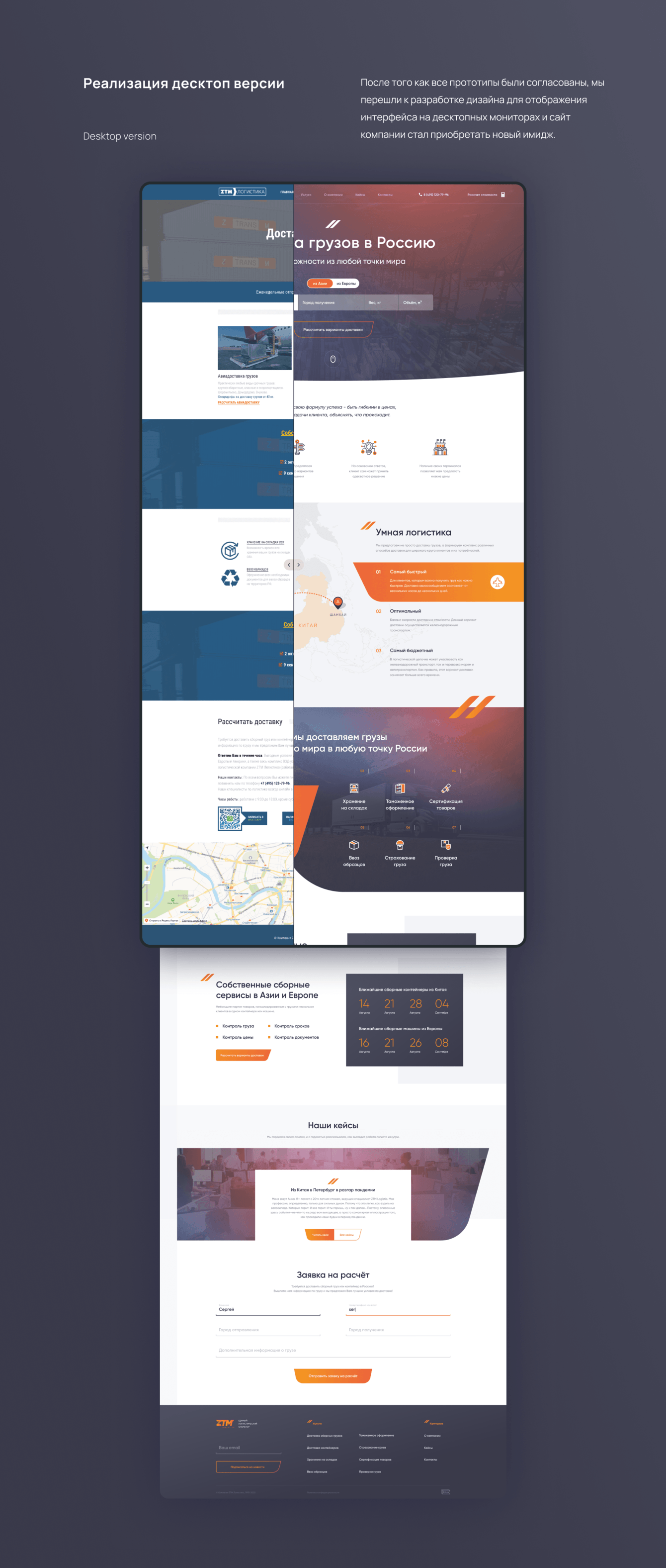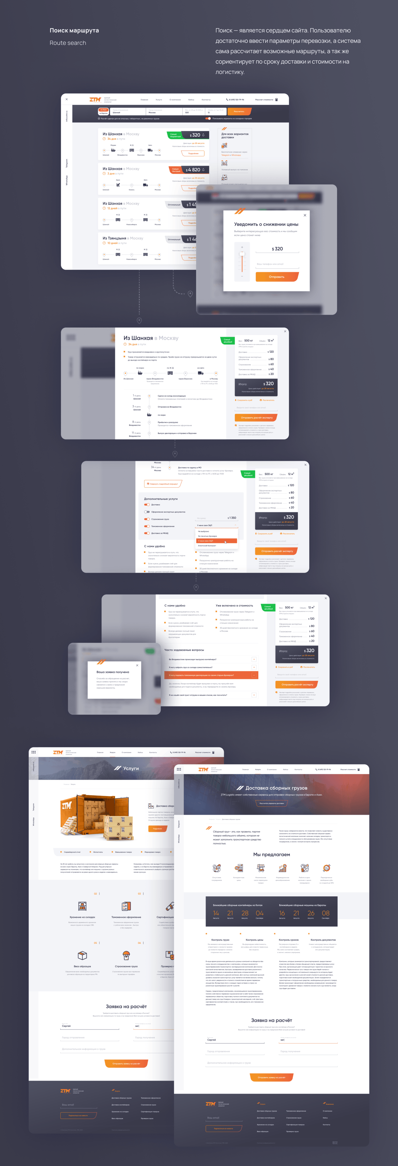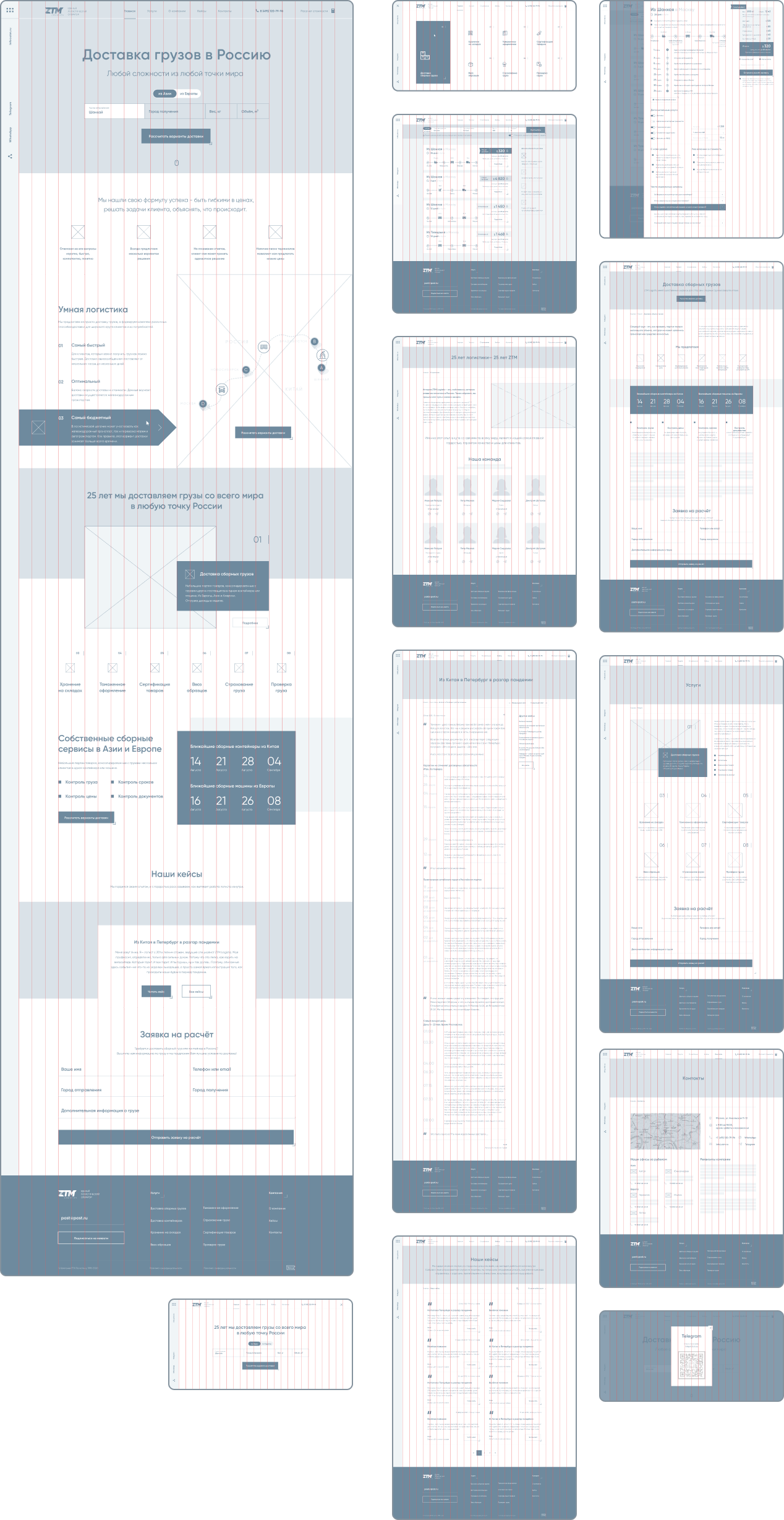 На основе набросков пары страниц от Заказчика и короткого интервью появилась идея визуализации основного отличия ZTM logistics от конкурентов, о ней мы расcкажем ниже, а пока переходим к проектированию страниц для основных сценариев пользования.