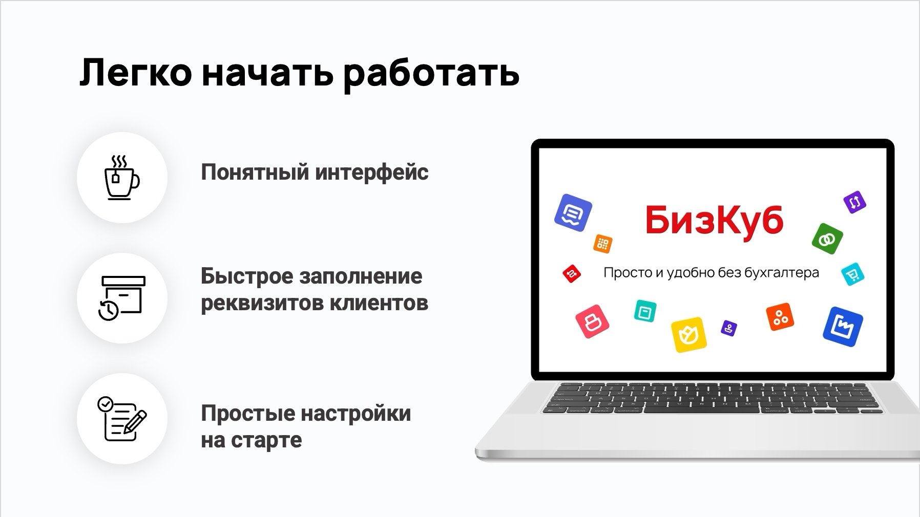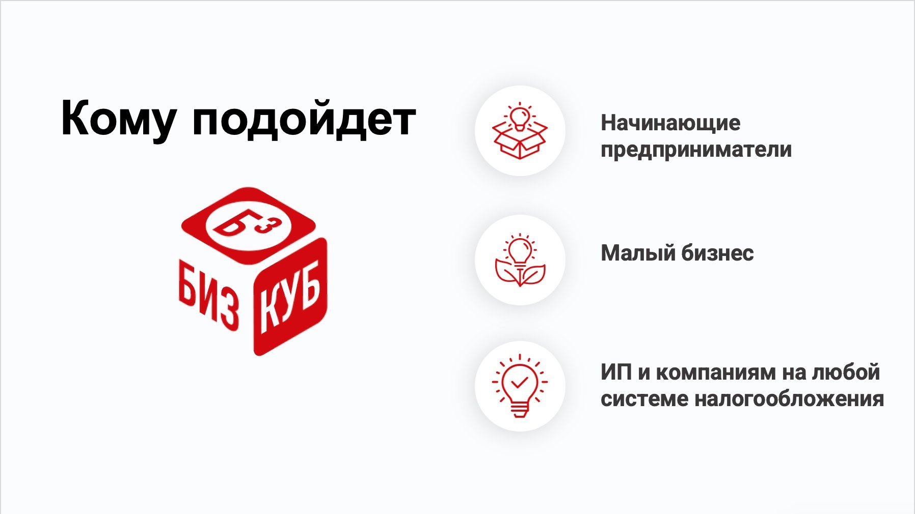 БизКуб — это облачный сервис из 12 приложений для решения бизнес-задач и сдачи отчетности самим предпринимателем.
