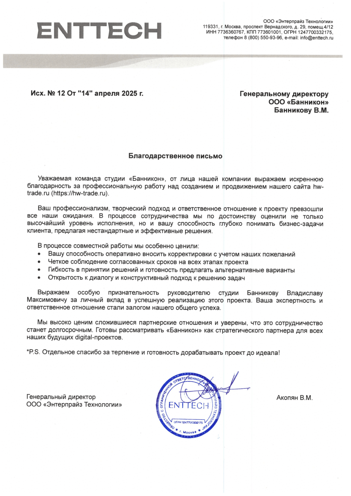 Примеры реализованных проектов приведены в разделе «Проекты» https://bannikon.ru/cases/
