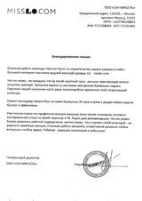 На рынке веб-маркетинга мы работаем уже более 9 лет и за это время заслужили репутацию надёжного партнёра, о чем свидетельствует масса положительных отзывов от наших заказчиков в виде благодарственных писем.
