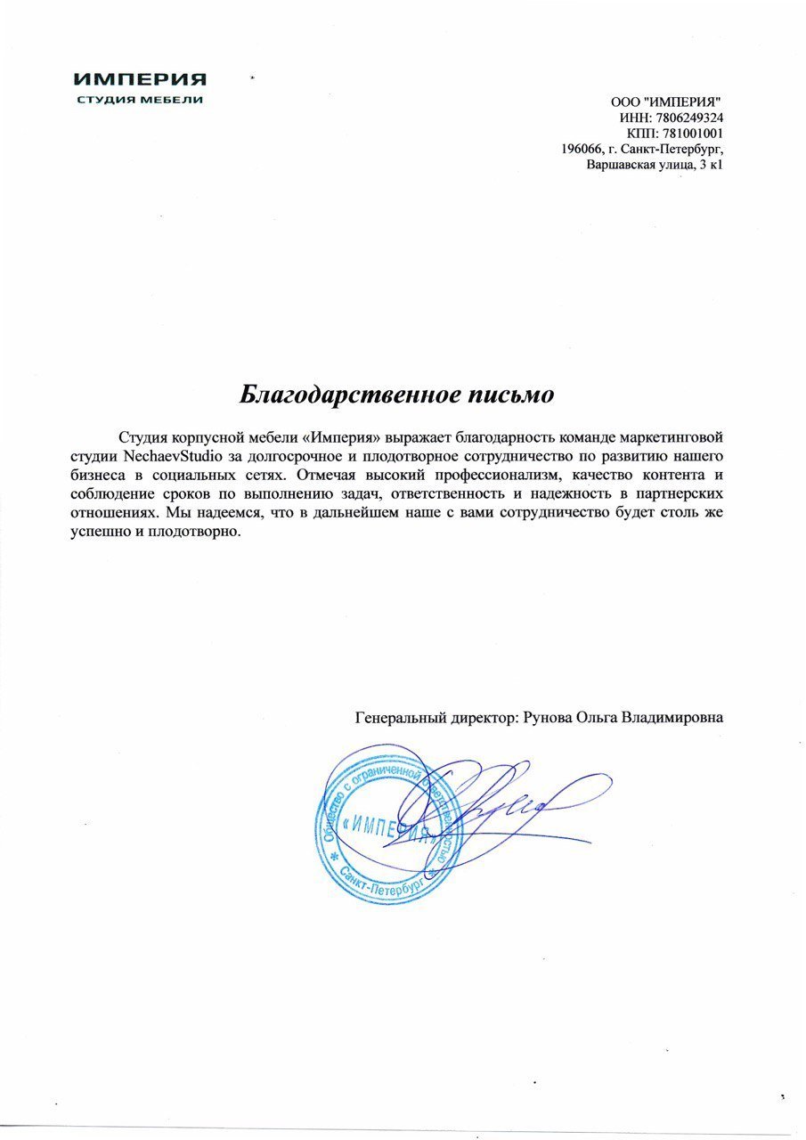 Комплексный SMM для студии мебели Империя в С...