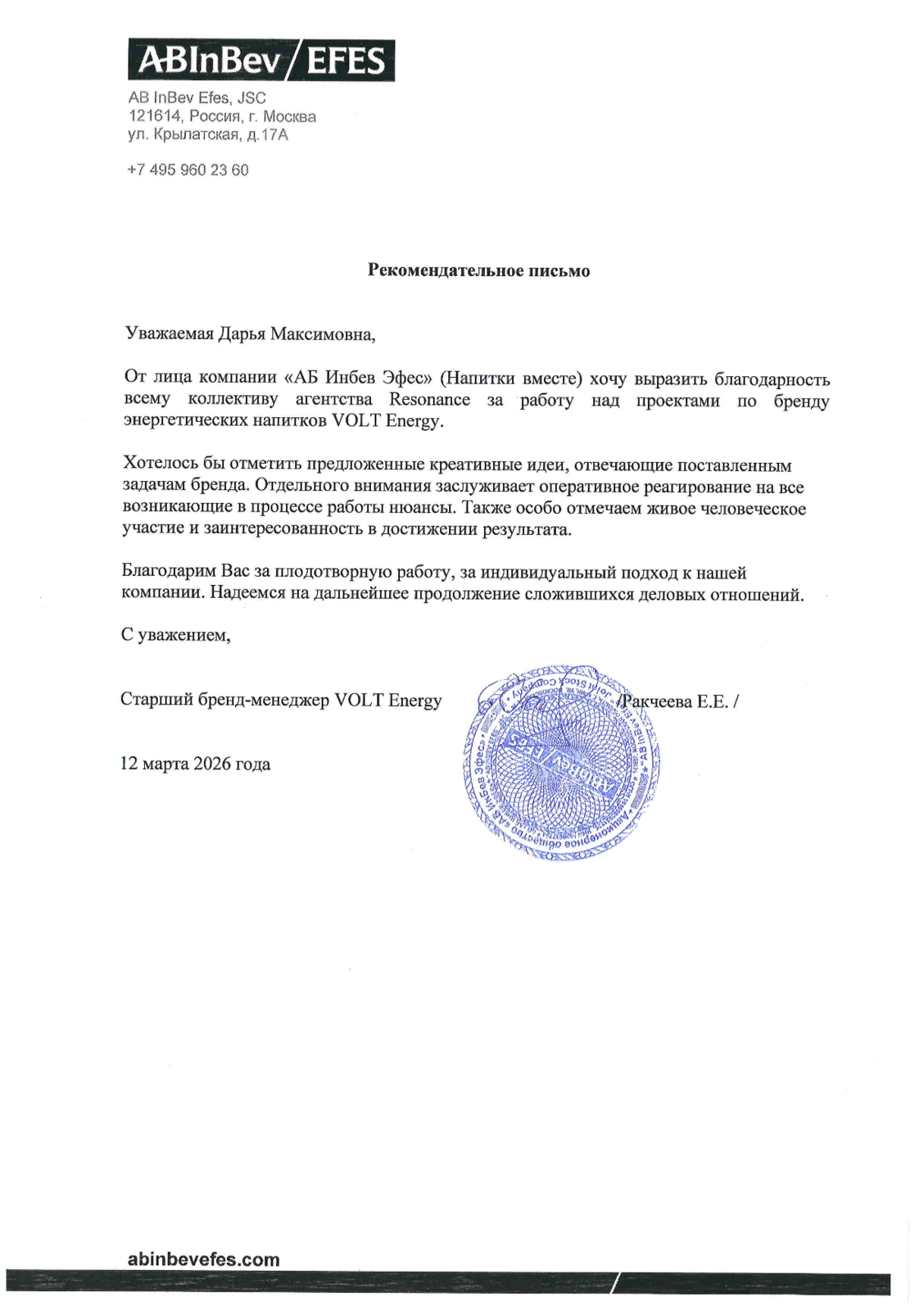 Resonance — креативное агентство, создающее яркий и правдивый контент, который запоминается и обсуждается. Мы предлагаем спецпроекты, работу с инфлюенсерами, продакшн, SMM, дизайн, продвижение и управление репутацией — всё для эффективной коммуникации брендов с аудиторией.