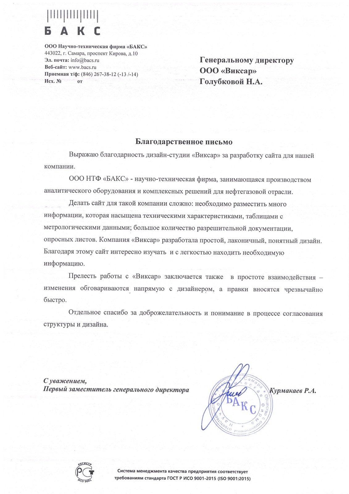 Благодарственные письма