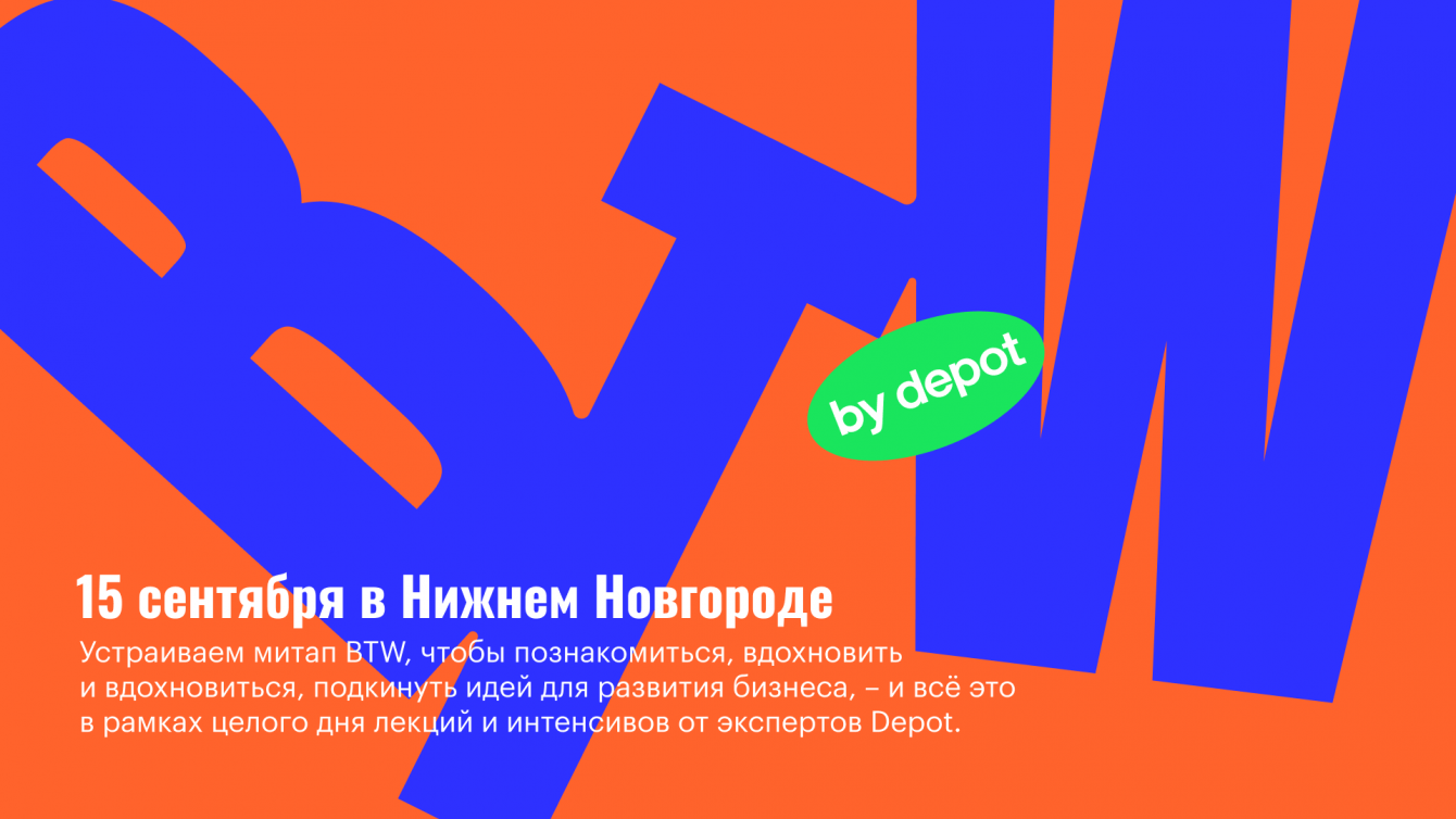 BTW (ByTheWay) – это новый образовательный проект от Depot, созданный для того, чтобы познакомить с миром брендинга и вдохновить на новые идеи для развития бизнеса. Это место встречи и знакомств специалистов из разных креативных и прикладных сфер – дизайнеров, копирайтеров, маркетологов, представителей малого бизнеса. Всех их объединяет одна общая идея – брендинг, и мы это докажем! Участники митапа погрузятся в процесс разработки брендов с нуля и работы с уже существующими брендами, а также почти сразу же применят полученные инсайты на практике.