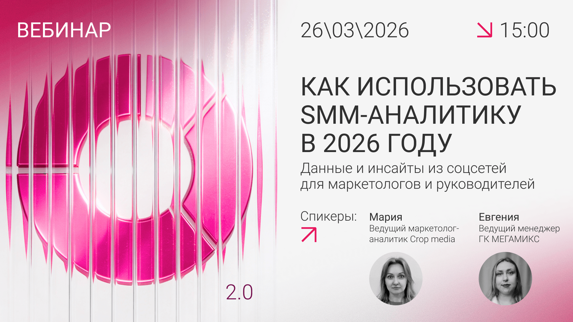 Спикеры: Мария Павлова, Ведущий маркетолог-аналитик Crop media и Евгения Никулина, Ведущий менеджер контент-стратегии ГК МЕГАМИКС.