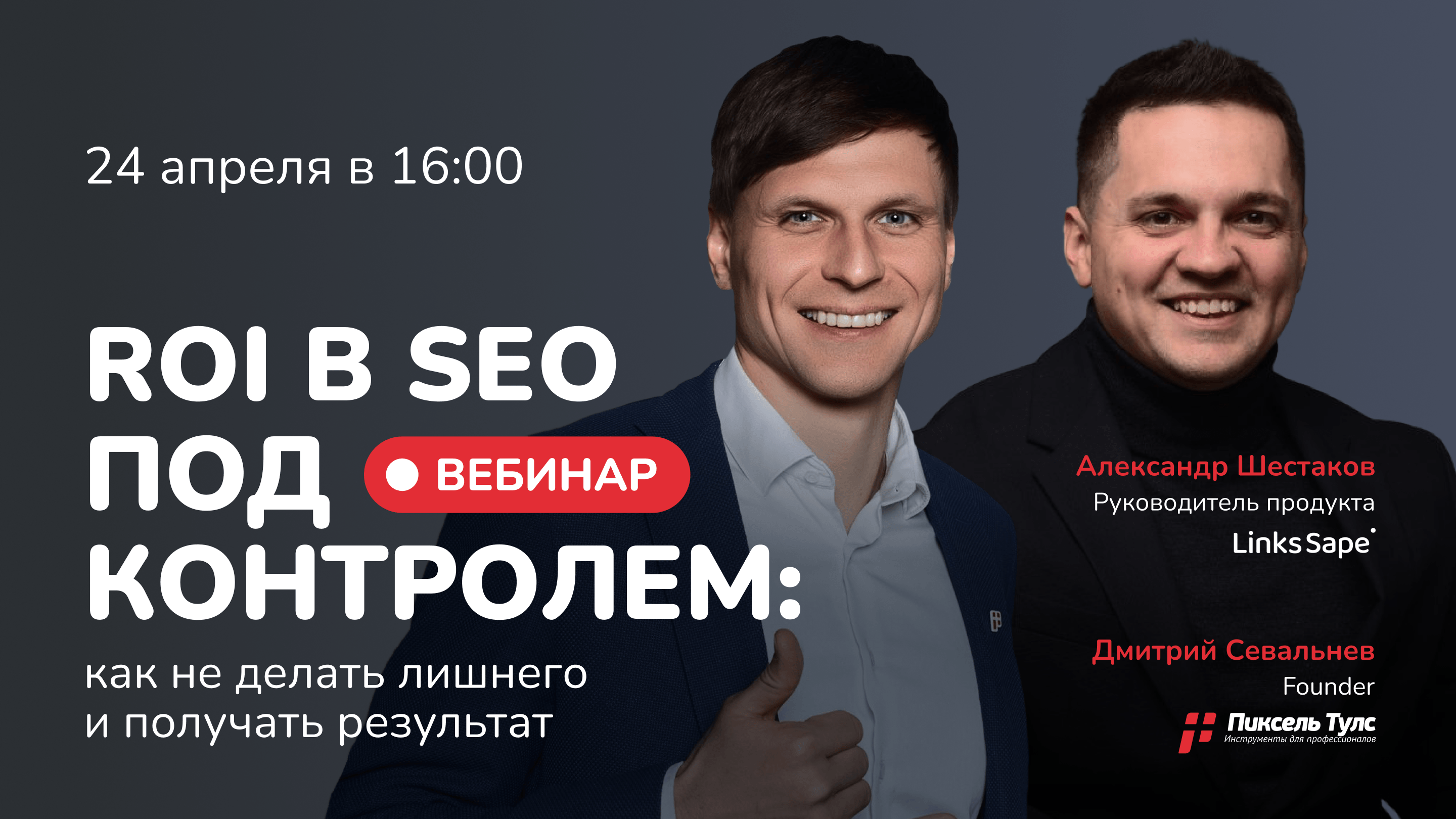 24 апреля в 16:00 на бесплатном вебинаре эксперты расскажут, как превратить SEO в точный инструмент роста бизнеса: от оценки эффективности поисковых стратегий до автоматизации линкбилдинга с помощью ИИ и повышения ROI (коэффициента рентабельности инвестиций). Узнаете, как все устроено на практике: с примерами, понятными объяснениями и рабочими инструментами.