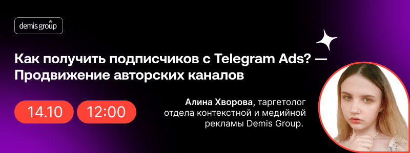 14 октября в 12:00 агентство Demis Group проведёт вебинар, посвящённый продвижению в Telegram.