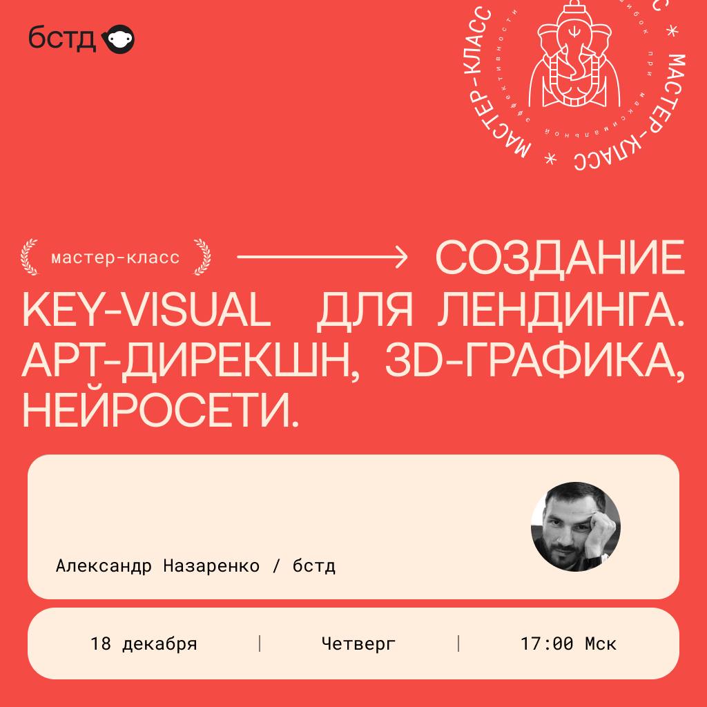 18 декабря в бстд пройдет открытый мастер-класс от 3D-художника Александра Назаренко по созданию key-visual для лендингов и коммерческих продуктов.