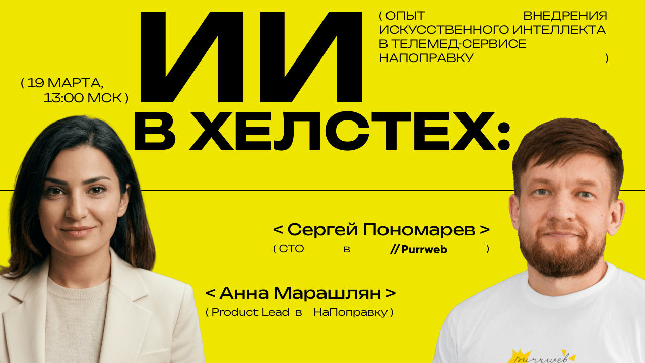 19 марта, 13:00 МСК проведем прямой эфир, где поговорим о реальном опыте внедрения ИИ в телемед-сервисе «НаПоправку».