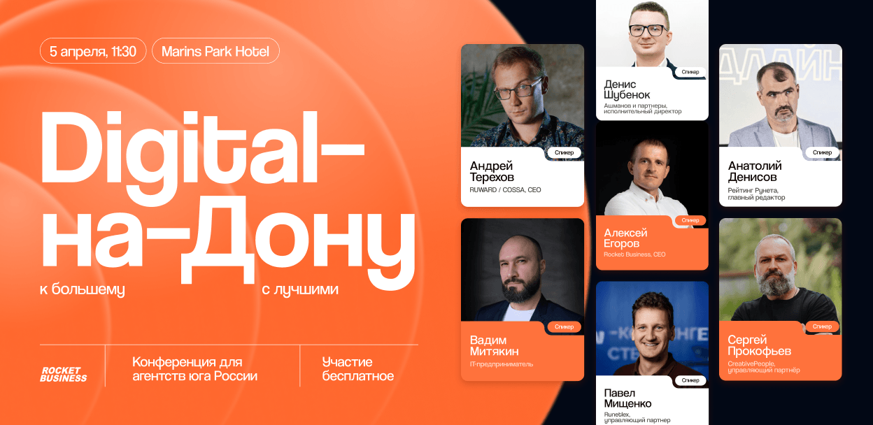 Digital-на-Дону — южная конференция для руководителей агентств, коммерческих директоров, лидеров отделов, PR- и digital-специалистов. Организатор — Rocket Business, SEO-агентство №1 по индексу лояльности клиентов.