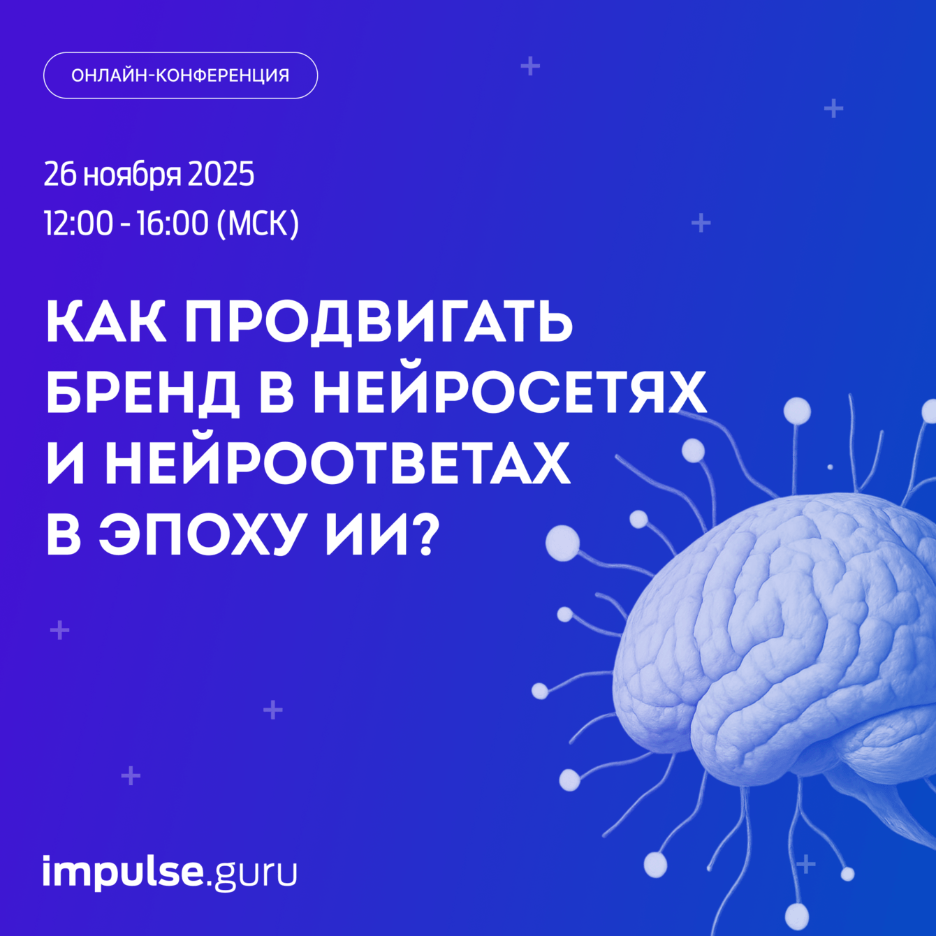26 ноября агентство impulse.guru проведёт онлайн-конференцию «Как продвигать бренд в нейросетях и нейроответах в эпоху ИИ», посвящённую новой системе метрик и принципам оценки эффективности бренда в эпоху искусственного интеллекта и GEO-поиска.