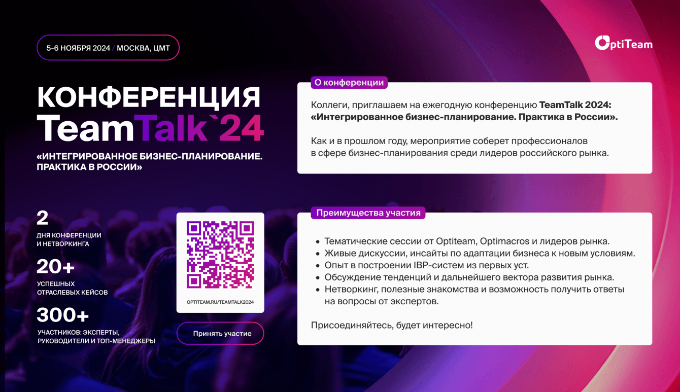 • Актуальные темы выступлений. Обсудим тенденции в интегрированном бизнес-планировании и кейсы внедрения моделей цифровой трансформации в российских компаниях.