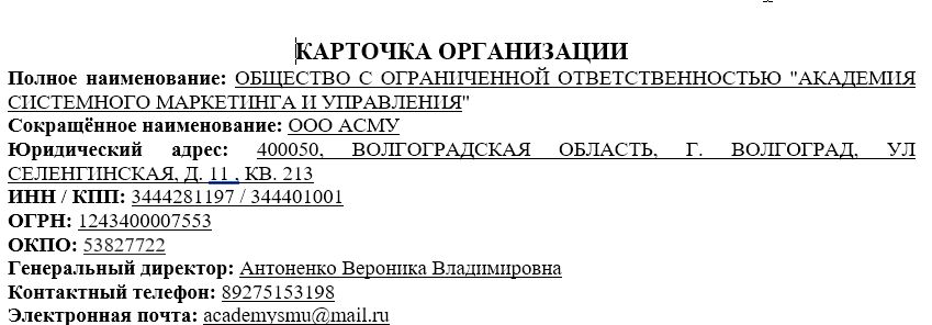 ОБЩЕСТВО С ОГРАНИЧЕННОЙ ОТВЕТСТВЕННОСТЬЮ "АКАДЕМИЯ СИСТЕМНОГО МАРКЕТИНГА И УПРАВЛЕНИЯ"