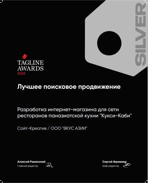 🎉 У нас замечательная новость, которой спешим поделиться! В минувшие выходные состоялась церемония награждения Tagline Awards 2024, и наша работа по SEO-оптимизации сети ресторанов паназиатской кухни Кукси-Каби удостоилась почётного второго места и забрала серебро! 🥈
