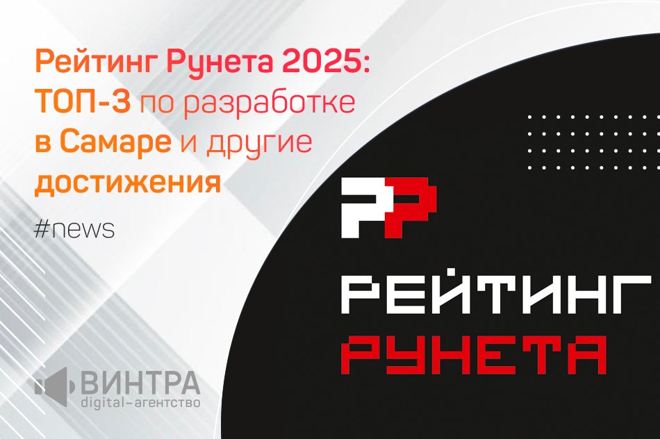 Мы с честью выдержали все испытания и теперь рады сообщить, что в «Рейтинге Рунета 2025» по Самаре digital-агентство «Винтра» заняло: