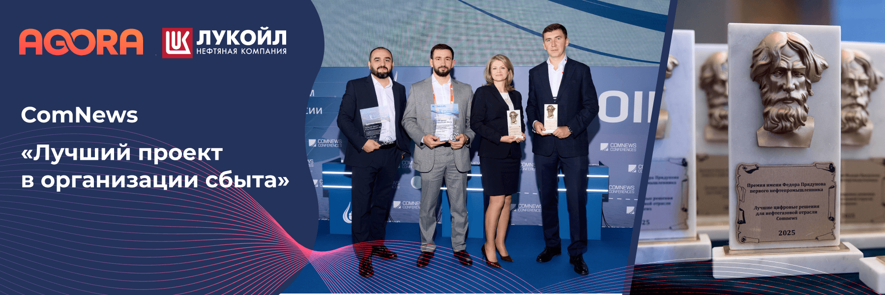AGORA заняла первое место в номинации «Лучший проект в организации сбыта» на XVI Премии имени Федора Прядунова среди «Лучших цифровых решений для нефтегазовой отрасли». Церемония награждения прошла 11 сентября 2025 года в рамках XI Федерального форума по ИТ и цифровым технологиям нефтегазовой отрасли России Smart Oil & Gas от ComNews, который привлекает ведущие компании отрасли и демонстрирует текущие тренды цифровизации и автоматизации бизнес-процессов. Выбор экспертного жюри подтвердил высокий уровень реализации и значимый вклад проекта в эффективность дистрибуции и закупок в нефтегазовом секторе.