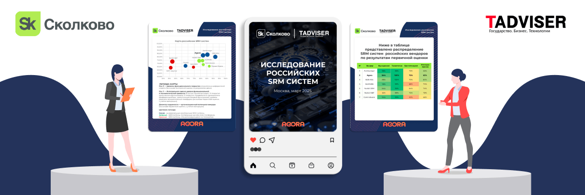 По результатам экспертной оценки фонда «Сколково» и аналитического центра TAdviser AGORA вошла в ТОП-5 ведущих SRM-систем с высокой степенью функциональной готовности.