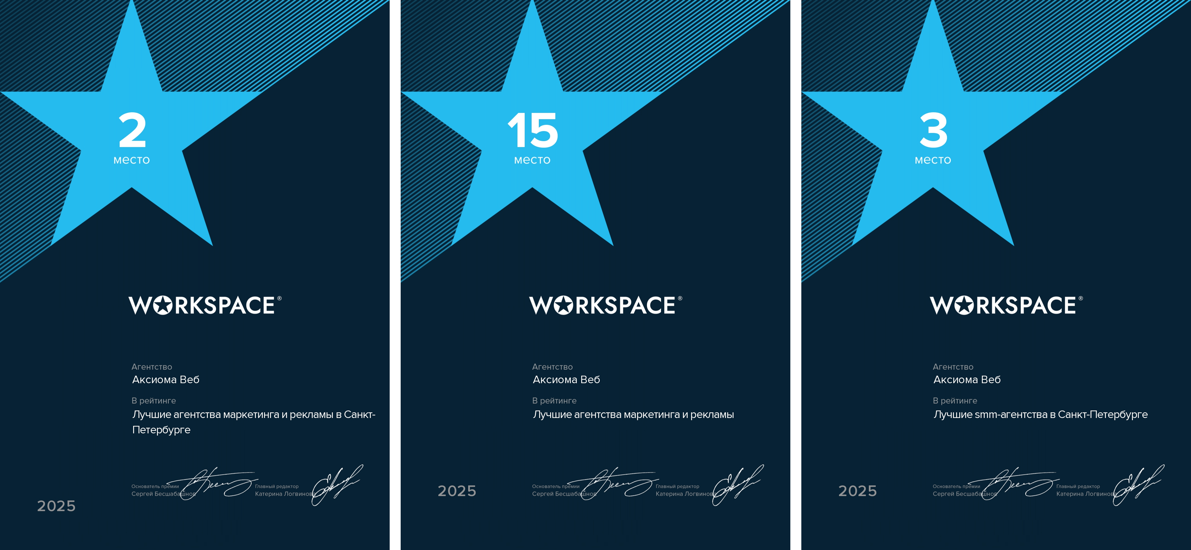 Онлайн-сервис Workspace опубликовал Рейтинги диджитал-агентств. Аксиома Веб вошла в несколько ведущих срезов и заняла: