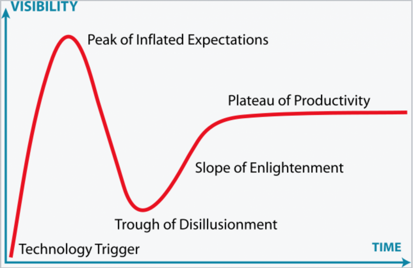 Слышали когда-нибудь про "Gartner Hype Cycle"? Это концепция, которая иллюстрирует "жизненный цикл" новых технологий, от начального периода (возникновения) и энтузиазма вокруг них, до периода разочарования и, наконец, стабильного использования. Если вы взглянете на график ниже, то станет понятно, что изменения в ИТ-сфере происходят не столько линейно, сколько циклично, с постоянными всплесками и спадами интереса.