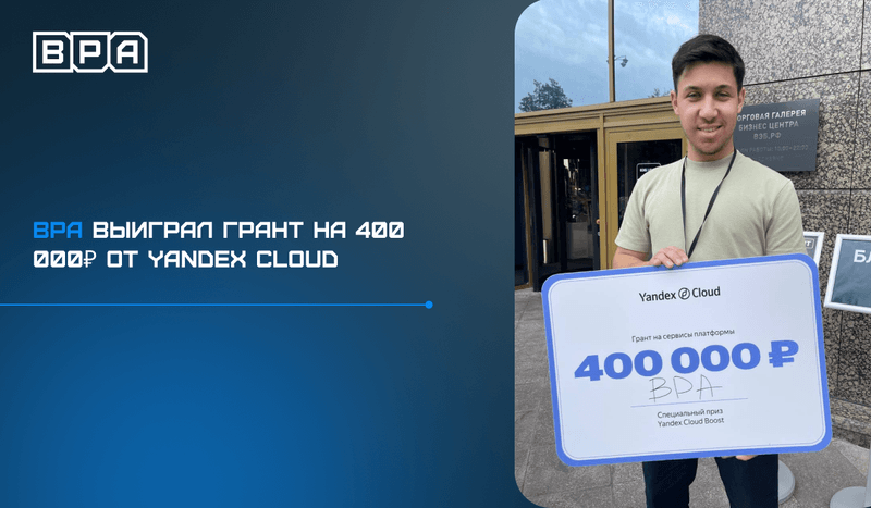 Грант от Yandex Cloud поможет BPAпродолжить разработку проекта и улучшить его функциональность. В рамках стартап-программыYandex Cloud Boost компании-разработчики могут воспользоваться сервисами облачнойплатформы для развития своих технологических продуктов на эксклюзивныхусловиях.