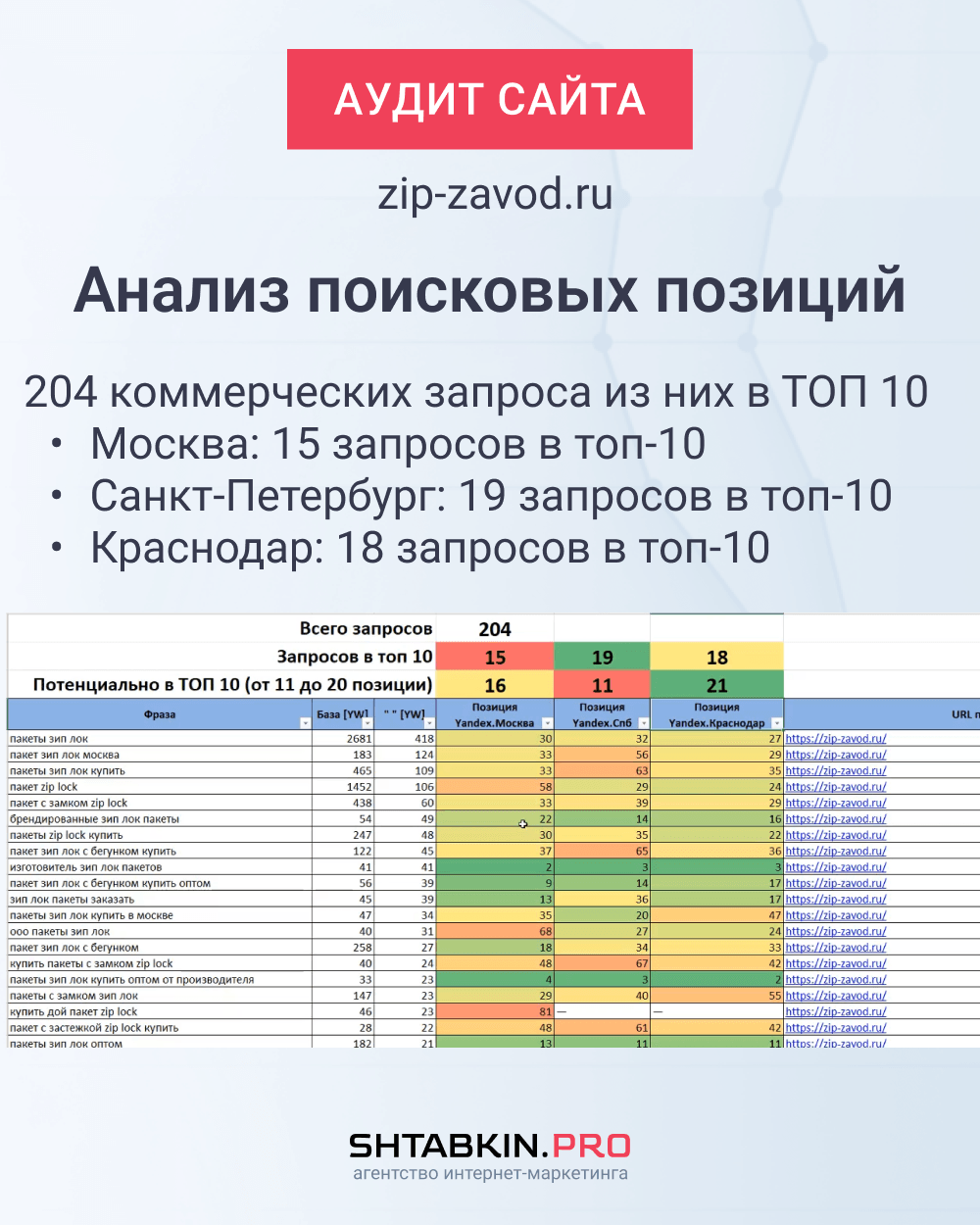 Была проведена выборка из 204 поисковых запросов по Москве, Санкт-Петербургу и Краснодару