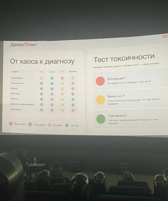 Мы посетили секции по разработке, управлению, кибербезопасности и аналитике. Особенно ценно было услышать экспертов из Т2, Сбера, Контура и других компаний, которые делились практическими кейсами и подходами.