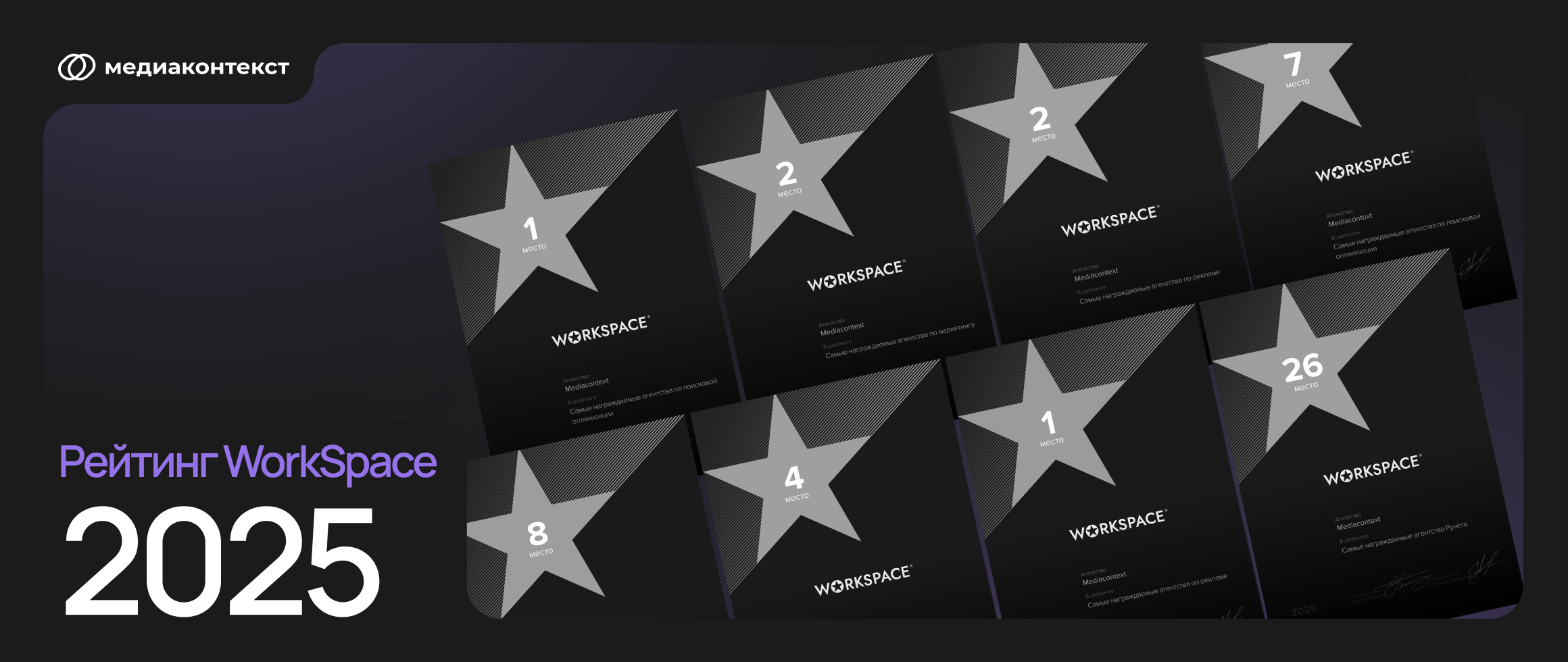 Мы гордимся успехом нашего агентства в престижном рейтинге «Самые награждаемые агентства» от авторитетного портала WorkSpace за 2025 год!